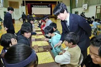 今夏に同校実施の将棋教室で講師を務めた宮嶋健太四段(25)の講演会のため体育館に集まっていた児童たちは、突然現れた藤井を見て「えー!」と驚き。歓声で藤井の持つマイクがハウリングするほどの熱烈ぶりで、藤井は「久しぶりに戻ってきて懐かしい」と目尻を下げた。