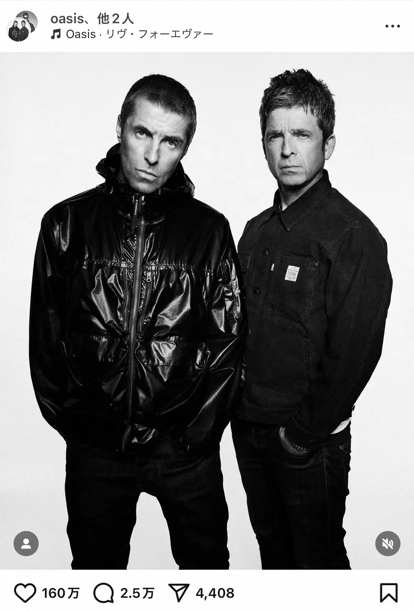 「オアシス」公式インスタグラム(@oasis)から 英バンド「オアシス」が日本にやってくる!来年10月東京Dで再結成ライブ「… ギャラリーで見る この記事のフォト 2024年11月22日の画像一覧 もっと見る 2024年11月22日の画像をもっと見る