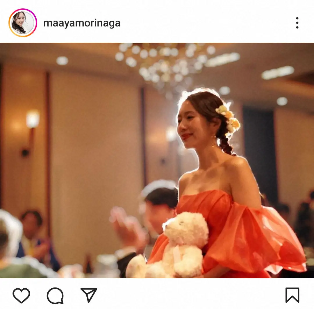 女優の白石まるみ(61)の娘で、タレントの守永真彩(33)が22日、自身のインスタグラムを更新し、結婚式のショットを公開した。