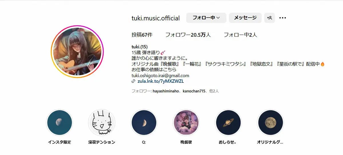 tuki.の公式インスタグラムから(@tuki.music.official) 紅白初出場の15歳tuki. 貴重な私服姿披露 素顔非公開もバックショットに… ギャラリーで見る この記事のフォト 2024年11月23日の画像一覧 もっと見る 2024年11月23日の画像をもっと見る