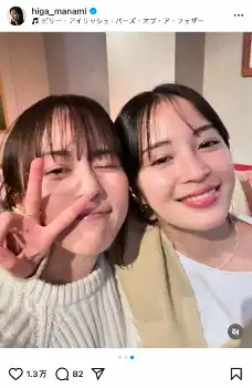 「お久しぶりのおすず。愛くるしくてたまらん」とつづった比嘉。広瀬と顔を寄せ合った仲良しツーショットを複数枚公開した。そして、ハッシュタグでは「広瀬姉妹に入りたい」と付け加えた。