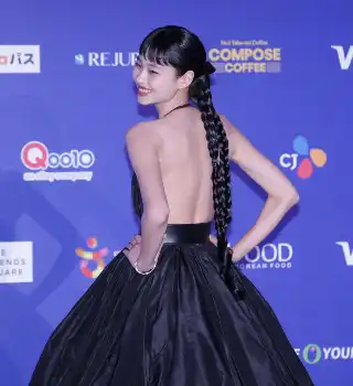 モデルとしても活動するチョン・ホヨンは裾がバルーンになったボリュームたっぷりのブラックドレスでレッドカーペットに登場。背中が大胆に開いたドレスで、後ろを向きとびきりの笑顔でスタイルの良さをアピールした。