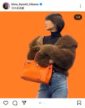 氷川きよし「真剣に気合い入れる日」の“勝負バッグ”披露 ビビッドなオレンジ色の高級バッグ手にポーズ