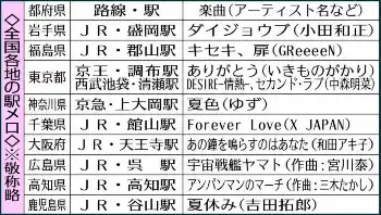≪地域ゆかりの歌手らの曲を採用≫「駅メロものがたり 人とメロディの中心に鉄道があった」の著者・藤澤志穂子さんによると「駅メロは発車ベルが変化したもの」で、発車ベルがない欧米などには存在しないという。日本では1951年に大分県の豊後竹田駅で「荒城の月」が「発車メロディー」となったのが最初とされる。以降、地域ゆかりの歌手らの曲が流れるようになった。選曲は「住民が地元を盛り上げるために使用を求めることが多く、地元の人が納得するような曲になります」という。「接近メロディー」は、電車の本数が少ない地方で到着を知らせるために流れることが多い。北海道のJR池田駅では「DREAMS COME TRUE」の曲が約5分前から流れるという。