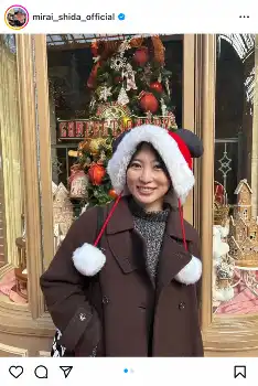 この日、志田はサンタ帽にミッキーの耳がついたファンキャップを着用し、笑顔のショットをアップ。