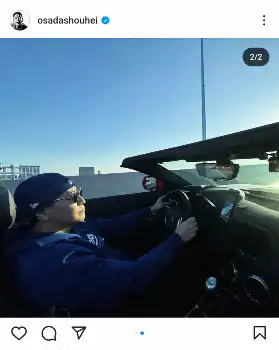 チョコプラ長田「ショウヘイ」つながり?57センチの肩幅目立つショット&愛車のオープンカー運転姿披露