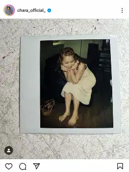 CHARAは「倉庫整理で見つかった写真から この髪型かわいい自分でやってるやつだね」としクリーム色のワンピースに赤いブラ紐を見せ、サンダル姿で笑っている写真を投稿。