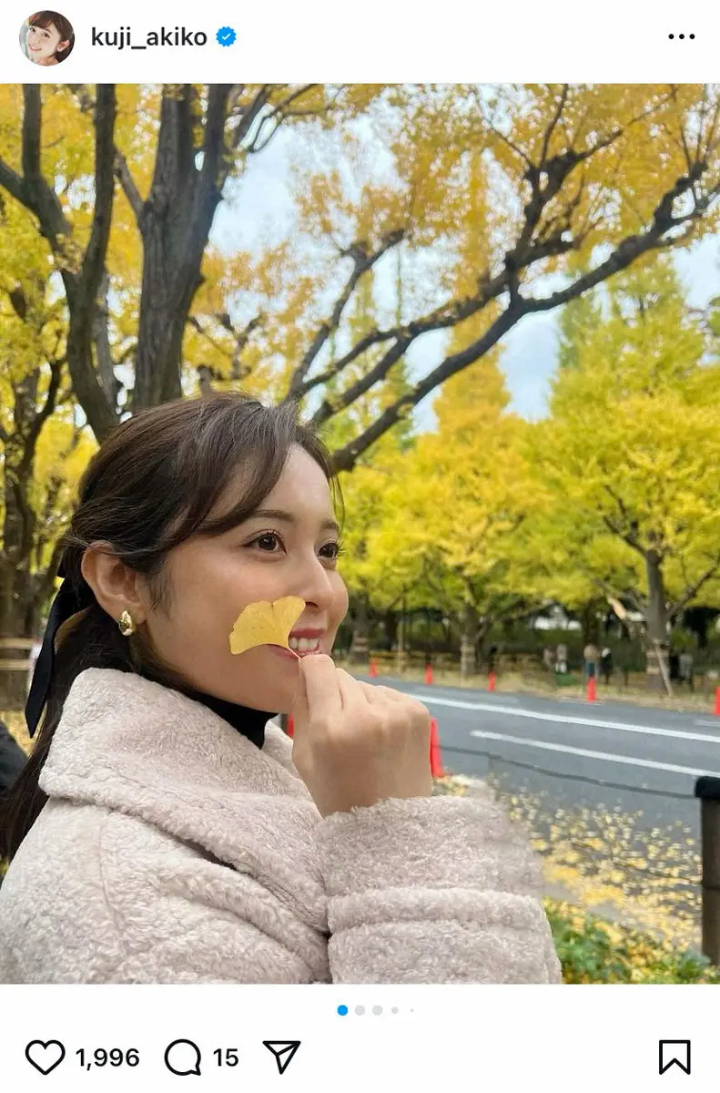 元フジテレビアナウンサーのタレント・久慈暁子(30)が24日、自身のインスタグラムを更新。初めて明治神宮外苑のイチョウ並木を訪れたことを報告した。