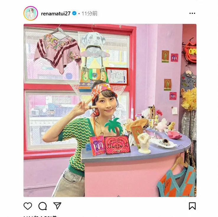 松井玲奈 朝ドラ「おむすび」のオフショット披露 古着屋のギャル店主姿に「衣装も笑顔もかわいい」の声