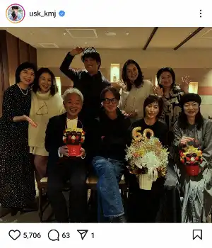 上地雄輔 豪華メンバーで大物俳優、女優、お笑い芸人らの還暦祝い 集合ショットに「凄い」「いい顔」の声