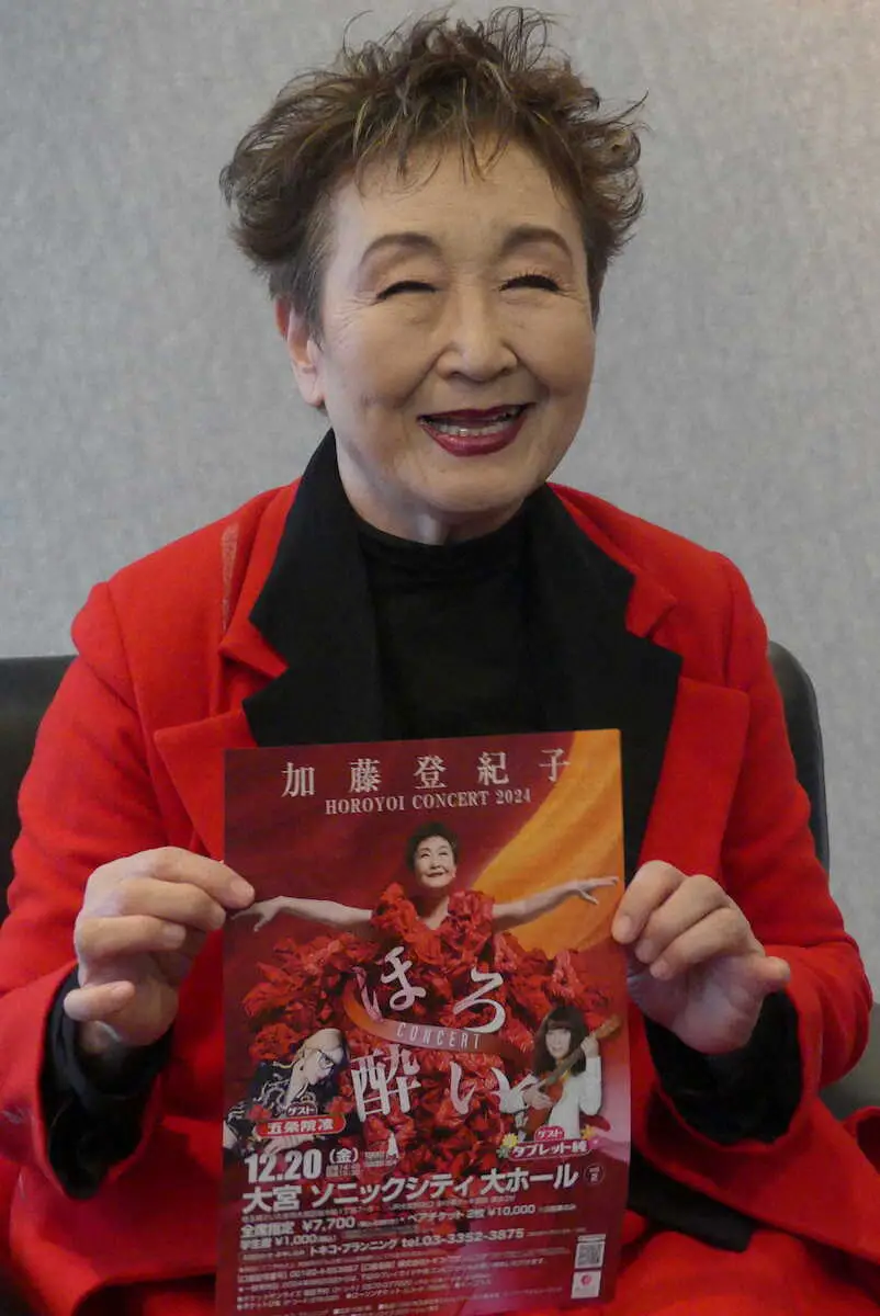 歌手の加藤登紀子(80)が26日、埼玉県内で、12月20日に開く年末恒例の「ほろ酔いコンサート」(大宮ソニックシティ)の取材会を行った。