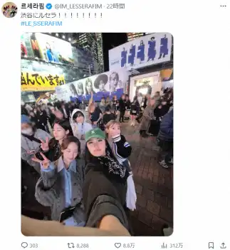 LE SSERAFIM 変装せず渋谷駅前に登場 ファン騒然「なんで平然とルセラが」「天使降臨!!」