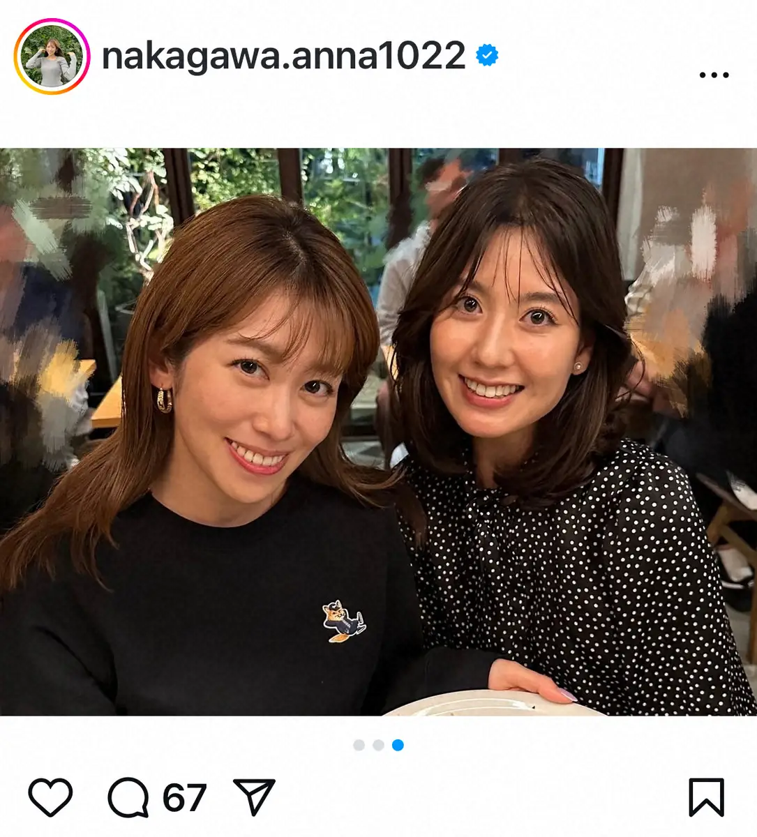 NHK・中川安奈アナウンサー公式インスタグラム(@nakagawa.anna1022)から NHK中川安奈アナ 「大好きな相棒ちゃん」仲良しの他局アナとのプラベSに… ギャラリーで見る この記事のフォト 2024年11月29日の画像一覧 もっと見る 2024年11月29日の画像をもっと見る