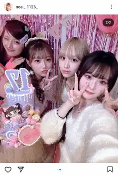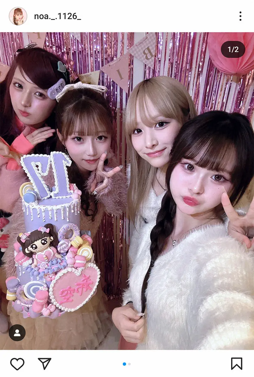 希空公式インスタグラム(@noa._.1126_)から。左からしなこ、希空、重川茉弥、さくら