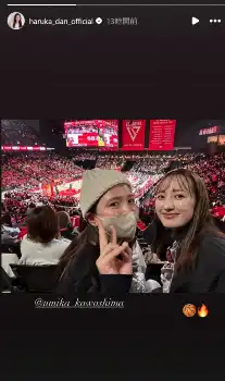 超名家出身女優 勝利の女神だ! 仲良し女優と共にプロバスケ選手の夫の試合を観戦 アリーナでにっこり