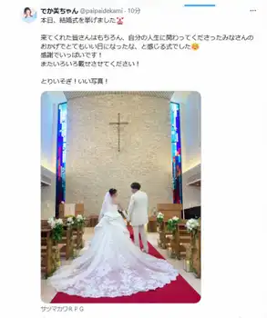 でか美ちゃん「本日、結婚式を挙げました」と報告 夫はサツマカワRPG 純白ドレス姿も披露