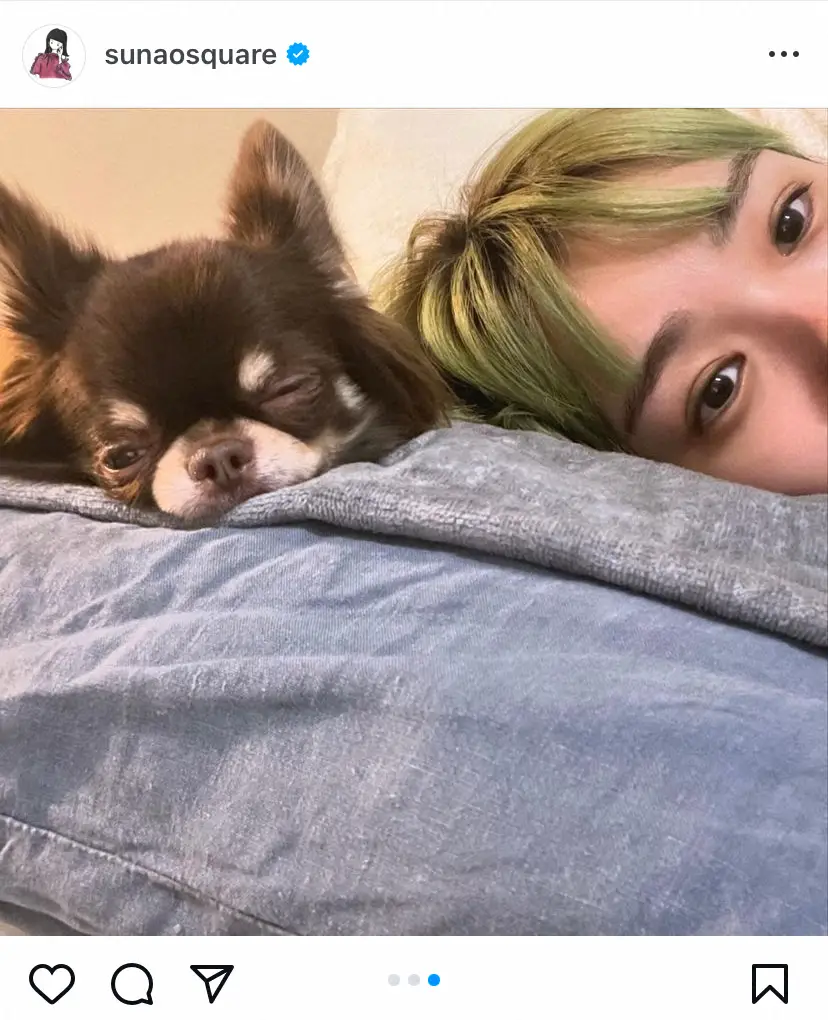 奈緒 「いつもと変わらぬ魚ちゃん」愛犬との“添い寝”ツーショットに反響 「激カワ」「可愛すぎ」