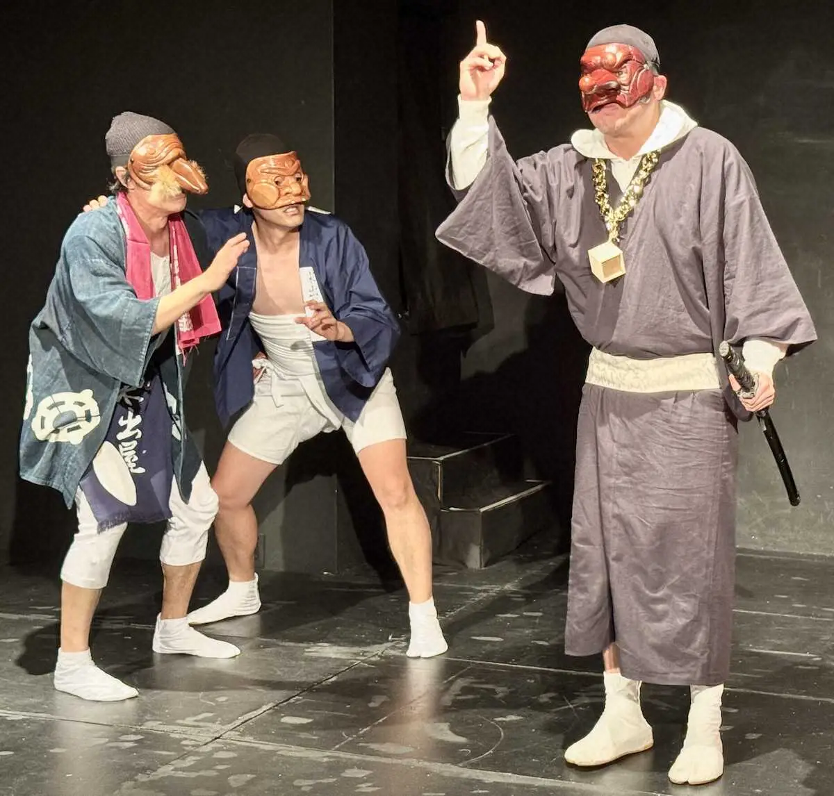演出家で俳優の大塚ヒロタ(44)が主宰するイタリアの伝統的な即興仮面喜劇「テアトロコメディア・デラルテ」の第7弾。生島は大酒飲みの侍・平林(ひらばやし)役に扮し、謎かけにも挑戦した。