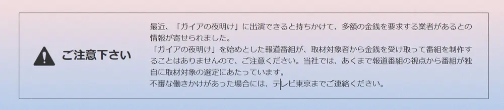 テレビ東京外観 Photo by 提供写真 テレ東、出演者への金銭要求を否定 Xでデマ広まる…「ガイアの夜明け」な… ギャラリーで見る この記事のフォト 2024年12月04日の画像一覧 もっと見る 2024年12月04日の画像をもっと見る