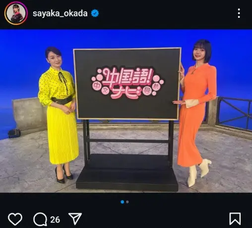 中国で暮らした経験もあり、「中国語を話せる先輩として出演しています また呼ばれて嬉しい~!一緒に中国語の勉強しよう~!」とつづった。