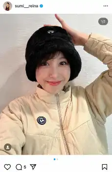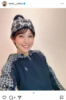 そして「圧倒的な機能性!!温かいだけじゃなく、動きやすいんです。これがあれば、寒がりな私でも冬のゴルフに行けちゃいます」と伝え、2枚目には紺色のニット帽を被り、同じ柄のウエアを着たスポーティーなコーデも公開した。