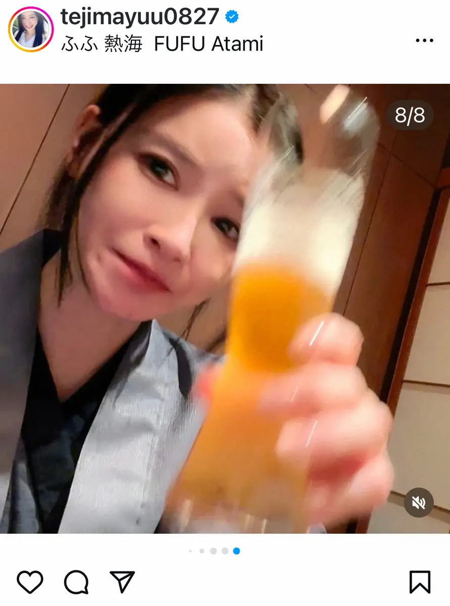 タレントの手島優(42)が4日、自身のインスタグラムを更新。結婚記念日に家族で熱海へ温泉旅行に訪れたことを報告した。