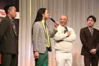 真っ黒のスーツ姿で登場。爽やかな笑顔で「めちゃめちゃイケてる賞だと聞いています!」と受賞の喜びを語ると、会場からは笑いが。「胸いっぱいです。光栄に思います」と喜びをかみしめた。