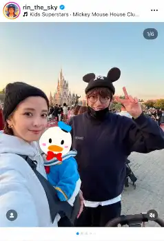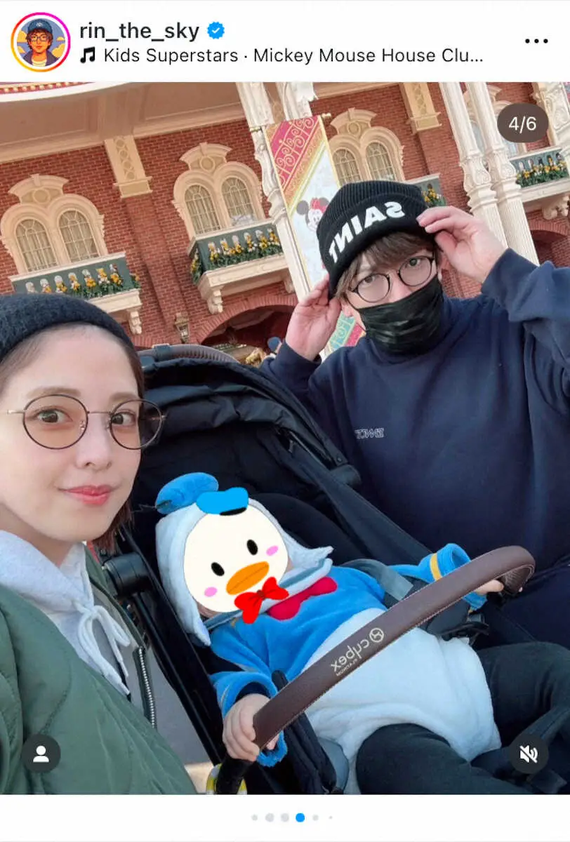 この投稿には「3人楽しそうーー」「りんチューがかわい過ぎます」「ミッキーの帽子似合ってますね」「幸せファミリー」「やさし~パパしてますね」などの声が集まっていた。