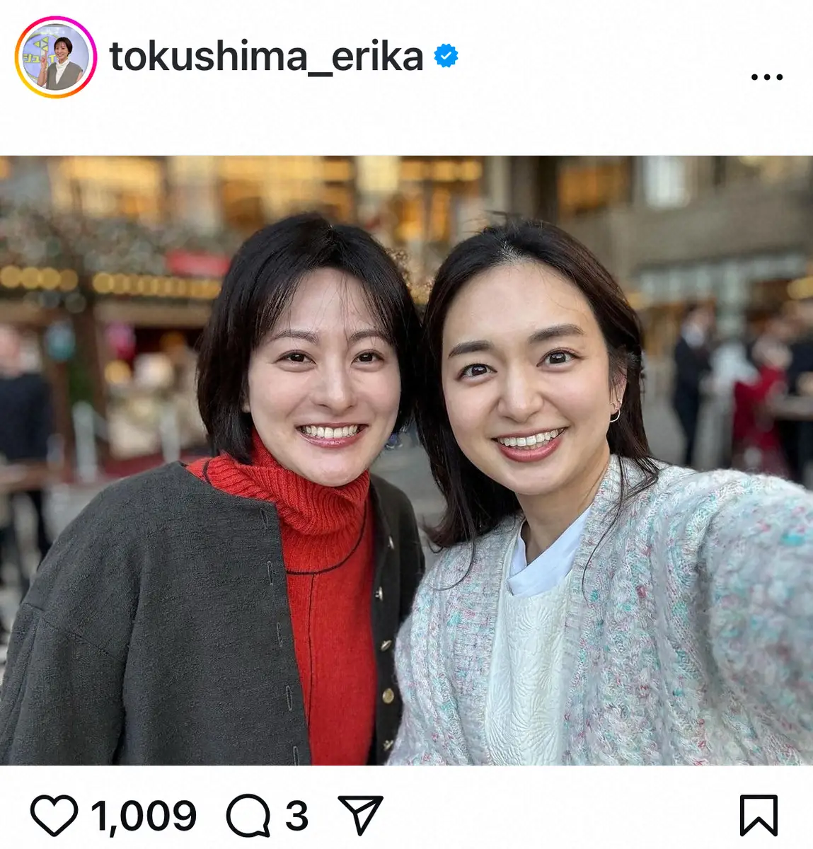日テレ・徳島えりかアナ「大好きなはるちゃんと」 フリー転身の後輩アナとのツーショ公開「素敵ですね」