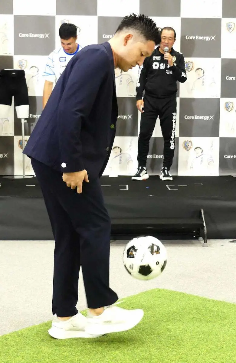コア・テクノロジーは「コアエナジーX」発売に向けて、関東リーグ1部の南葛SCへのスポンサードも発表。南葛SCの風間八宏監督(63)、大前元紀(34)、サッカー経験者のタレント・JOY(39)、タレントでスポーツライターの松原渓(41)も登壇した。