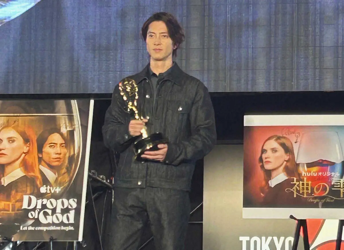 先月、米国の国際エミー賞(連続ドラマ部門)を受賞した日仏米共同制作の主演ドラマ「神の雫(しずく)」をPR。