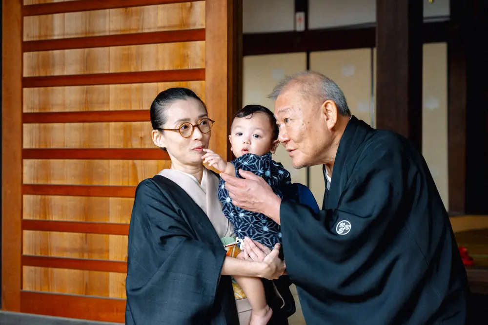 「海に眠るダイヤモンド」第7話。1歳になった孫・誠を抱く一平(國村隼)とハル(中嶋朋子)(C)TBSスパークル/TBS