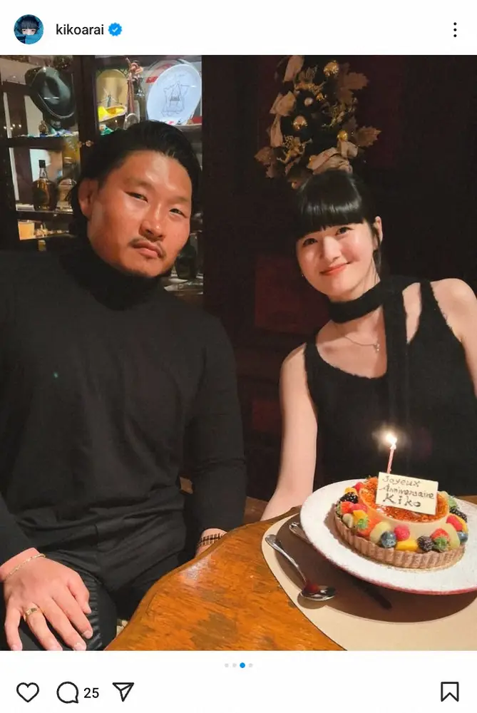 前日には夫の啓太も「お誕生日おめでとう御座います これからも宜しく頼む」とし、夫妻の2ショットを投稿。「では宮崎合宿に行って参る 感謝」とつづっていた。