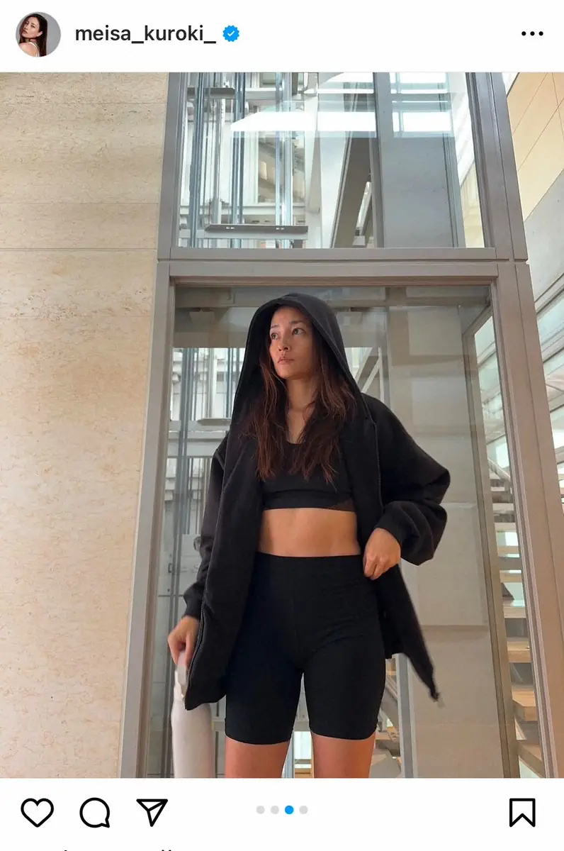 この日「さぁいよいよ、ベッドから出るのに時間がかかるようになってきた寒さ到来。しばらくサボってたworkoutも気合いで再開」とつづり、上下ブラックのトレーニングウエア姿でポーズを決めるショットを数枚アップした黒木。
