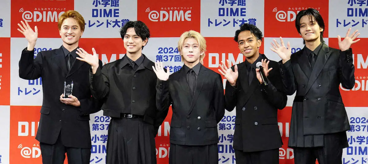 Aぇ!groupが「2024 小学館DIMEトレンド大賞」の「ベストキャラクター賞」に選ばれ、11日、都内で行われた贈賞式に出席した。正門良規と末澤誠也は今年の“Aぇ(ええ)こと”に、事務所の先輩である木村拓哉との交流を挙げた。