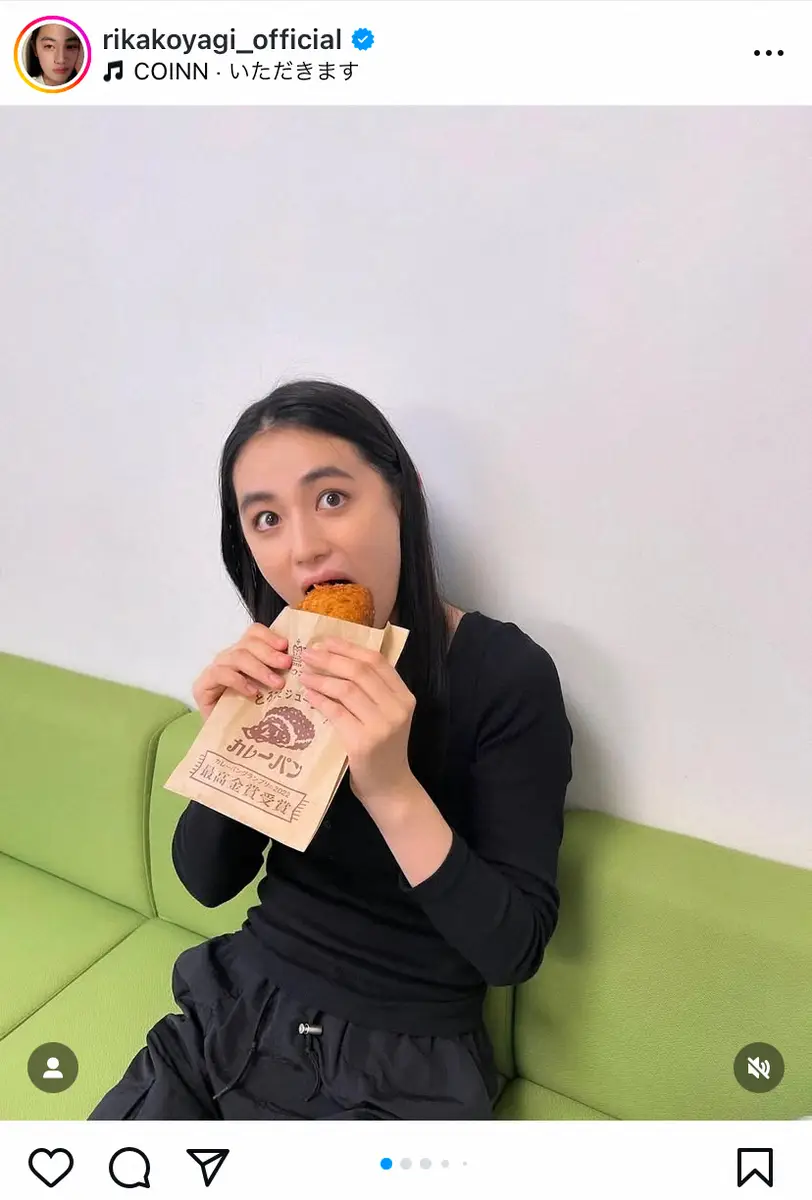 女優の八木莉可子(23)が12日、自身のインスタグラムを更新。カレーパンにかぶりつくショットを披露した。