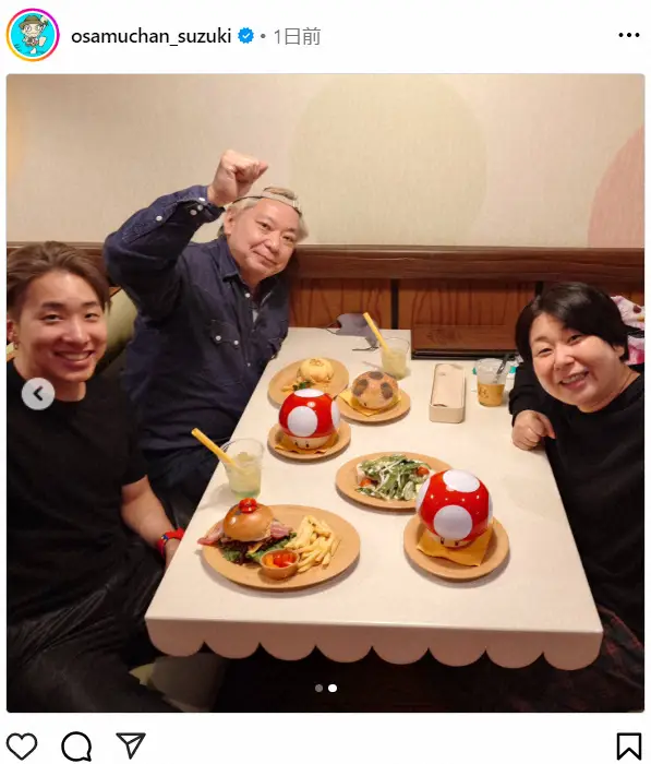 鈴木氏は「毎年恒例、USJに家族で行ってきました!今年は久々に陣君も一緒」とつづり、妻でお笑いトリオ「森三中」の大島美幸、男性16人組「THE RAMPAGE」のリーダー・陣との3ショットをアップ。