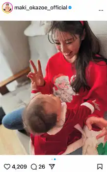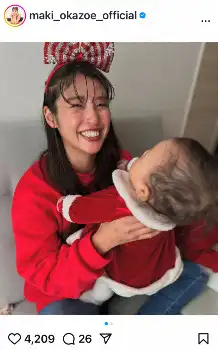 フリーアナウンサーの岡副麻希(32)が13日、自身のインスタグラムを更新。7カ月の長女との母子サンタショットを披露した。