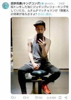 キンコン西野「筋トレハラスメントやめろ」とつづる「なんで全員がお前の身体に憧れている前提やねん」