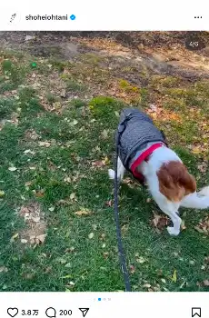 大谷翔平 ダウン着たデコピンと冬のお散歩 「防寒対策バッチリ」「かわいい」と反響