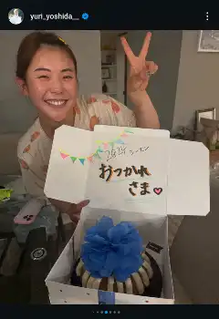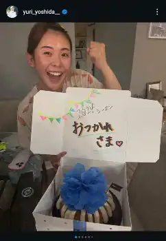 吉田は「ここ最近で一番うれしかったこと」と書き出し、マネジャーとトレーナーが「1年間お疲れさまでした」と“サプライズ”のメッセージとケーキでねぎらってくれたことを報告。