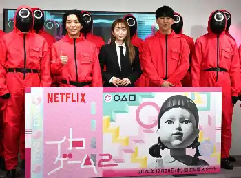 お笑いコンビ「ニューヨーク」の嶋佐和也(38)、屋敷裕政(38)が18日、都内で行われた「Netflixシリーズ『イカゲーム』シーズン2 ピンクガード日本出陣式」に出席。これまでに経験した“イカれたゲーム”について明かした。モデルの“みりちゃむ”こと大木美里亜(22)も登壇した。