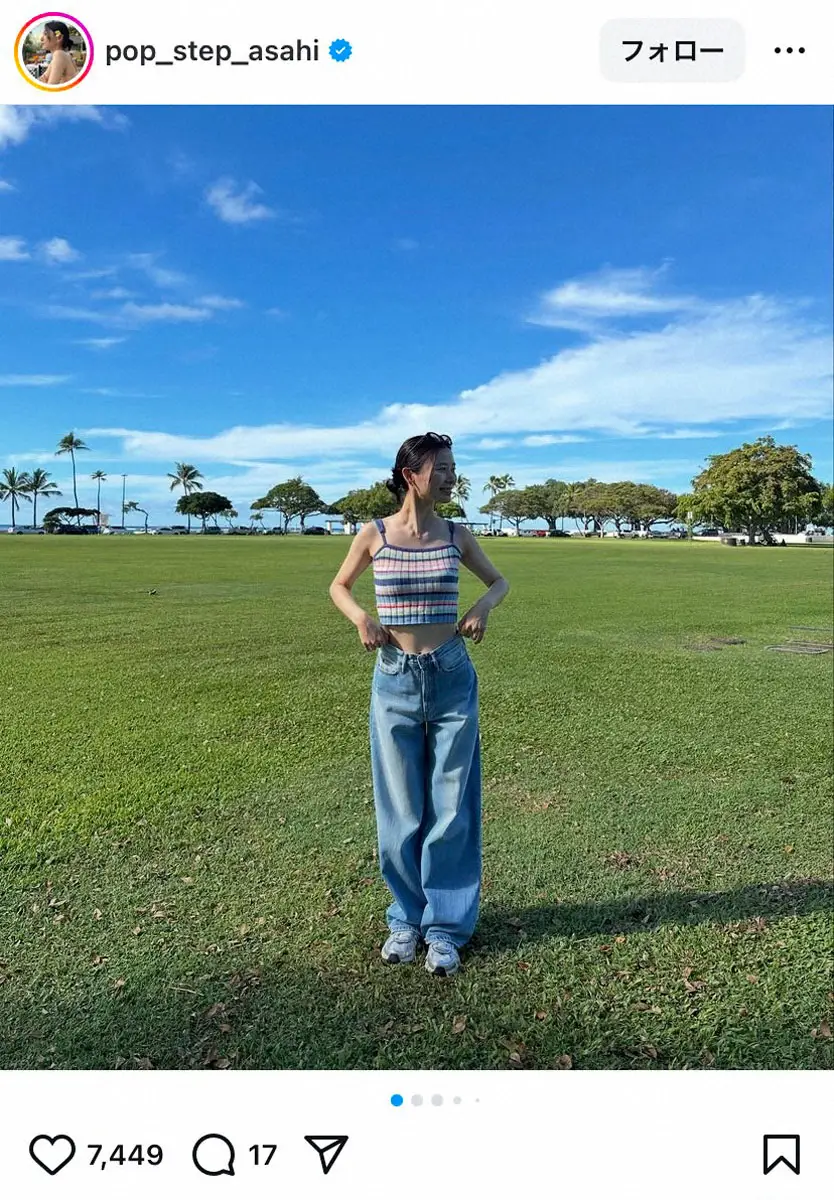 タレントの朝日奈央(30)が19日、自身のインスタグラムを更新。米ハワイでの“へそ出し”ルックを公開した。