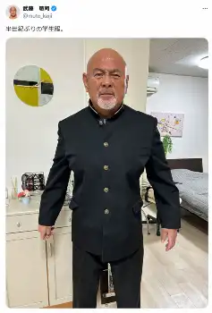 衝撃! 武藤敬司「半世紀ぶり」の学ラン姿、ファンも爆笑「凄い迫力」「ウケる」「第二ボタンください」