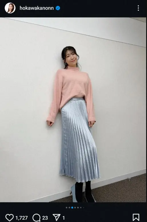 気象予報士でタレントの穂川果音(38)が20日までに自身のインスタグラムを更新。ピンクニット“12度の日”コーデを披露した。