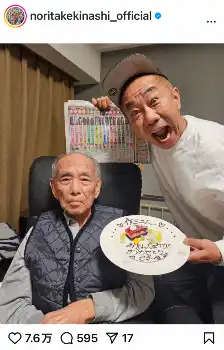 木梨憲武 「ほぼほぼ変わらない顔」の“会長”父の93歳誕生日報告「ステキな親子」「会長はイケメン」