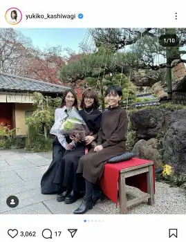 柏木由紀子 歌手の長女、女優の次女と親子3ショット「少し早めの」77歳誕生日祝われる「三姉妹のよう」