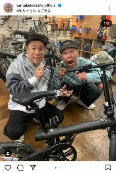 木梨憲武 実家の自転車店に岡村隆史が来店 2ショット写真に「まるで兄弟みたい」「楽しそうー」の声