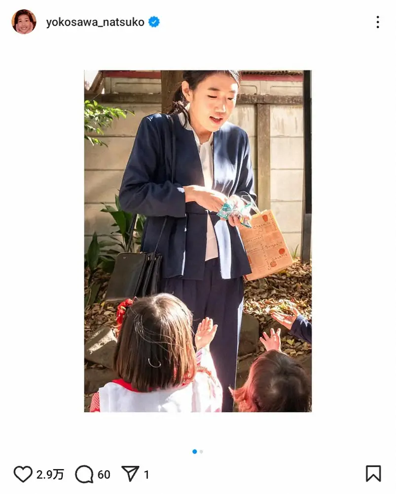 横澤夏子 Photo by スポニチ 3児のママ・横澤夏子「次女の七五三の写真が…」親子ショットにファンほっ… ギャラリーで見る この記事のフォト 2024年12月23日の画像一覧 もっと見る 2024年12月23日の画像をもっと見る