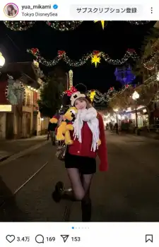 SKE48の元メンバーでタレントの三上悠亜(31)が23日までに自身のインスタグラムを更新。ショーパン姿のディズニーコーデを披露した。